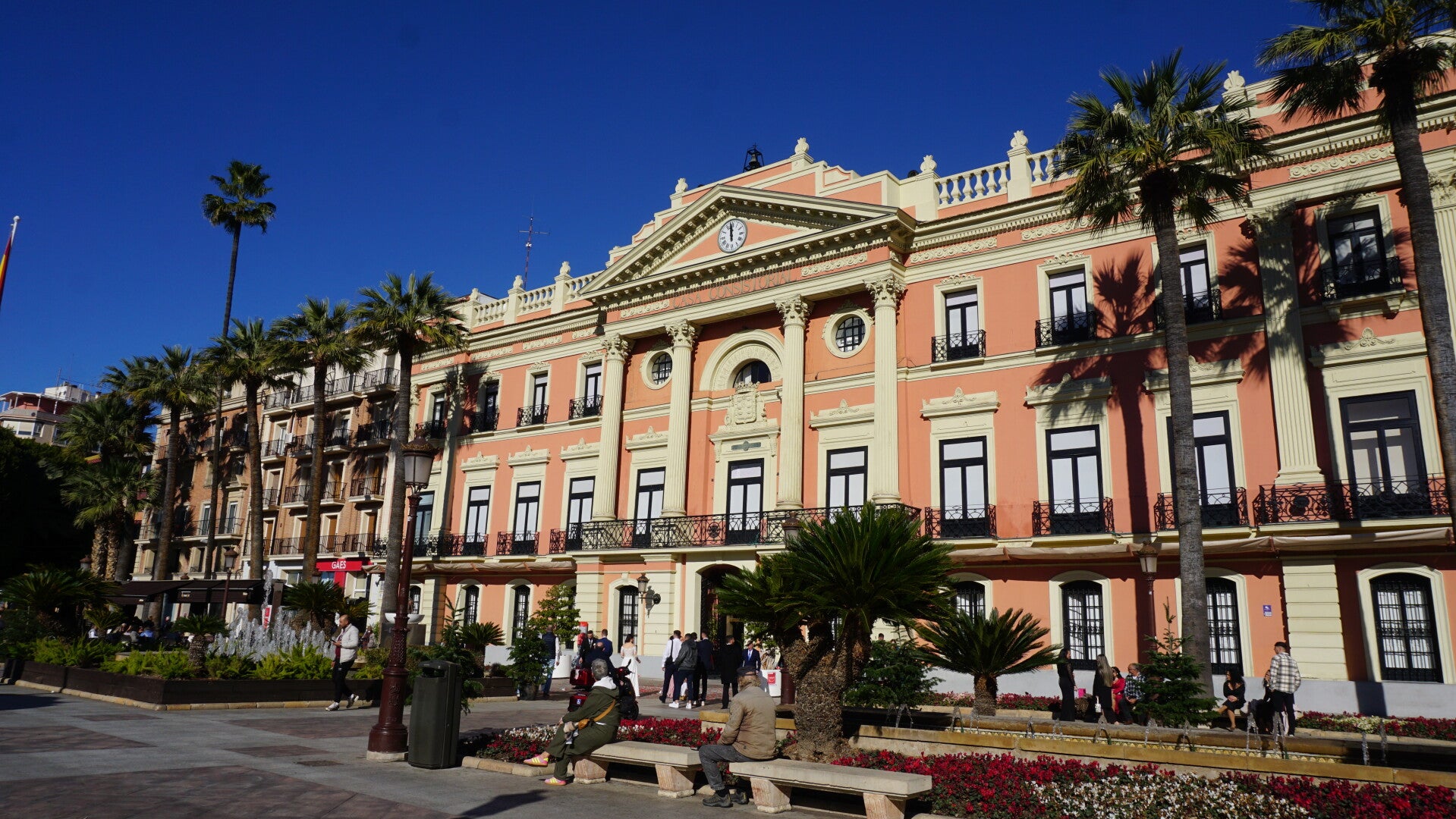 Die Puente de los Peligros, die „Brücke der Gefahren“, die einen malerischen Blick auf den Segura-Fluss bietet, dem Paseo del Malecón, der Glorieta de España und die Casa Consistorial, das neoklassizistische Rathaus. Unser Weg führt uns vorbei an der Catedral de Murcia (wieder Kirche …) und dem Episcopal Palace (wieder Haus), bis wir am beeindruckenden Plaza Cardenal Belluga (wieder Platz …) mit der prächtigen Catedral de Murcia ankommen (wieder Kirche …)