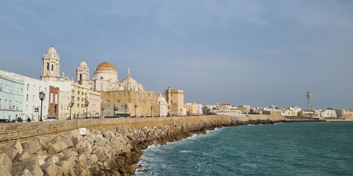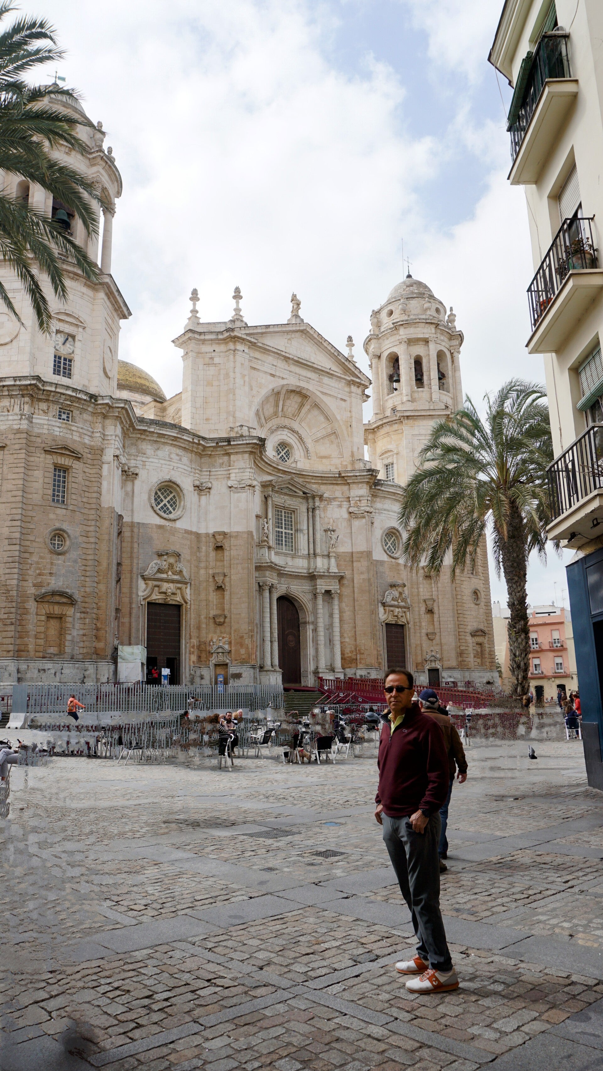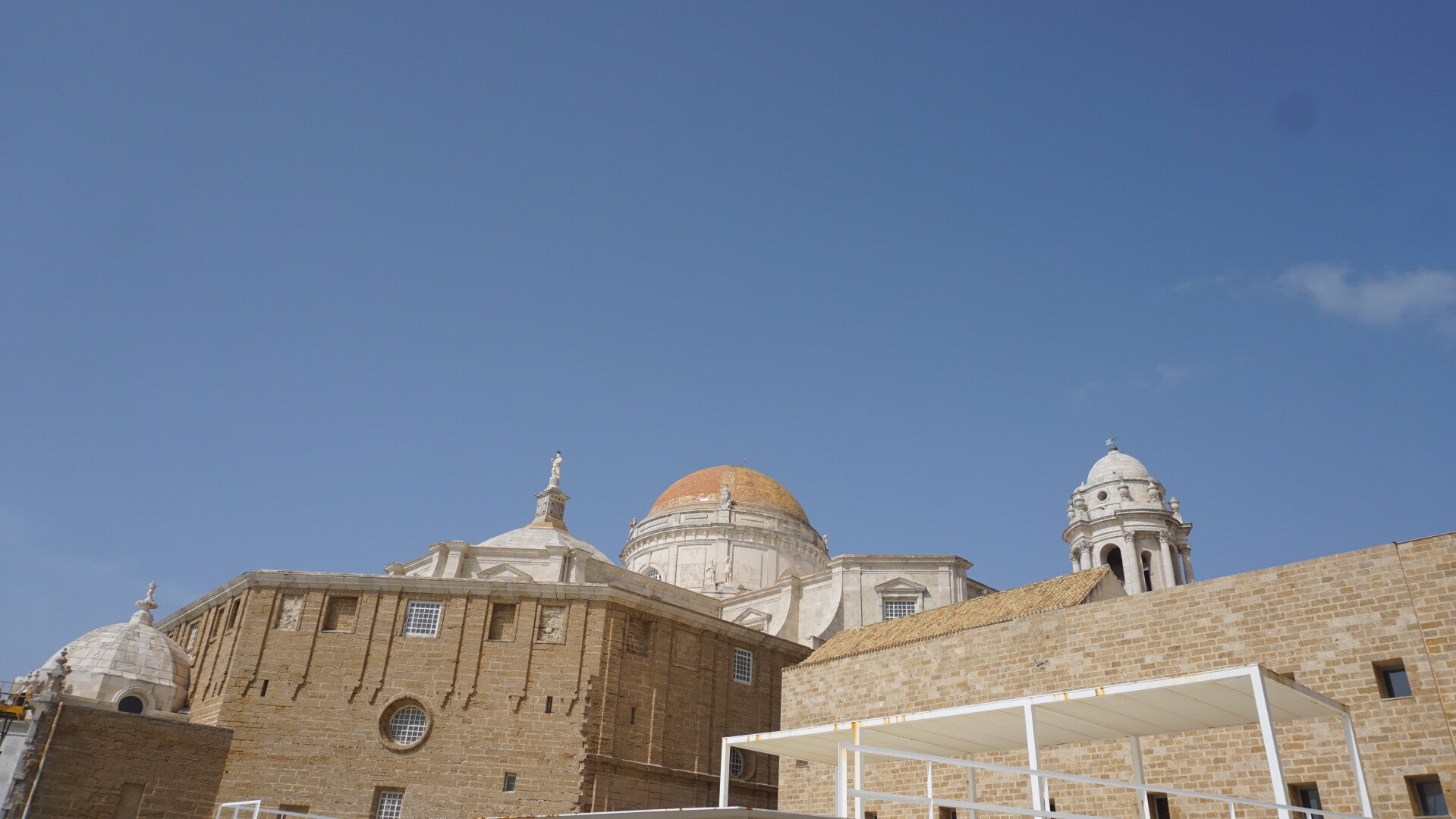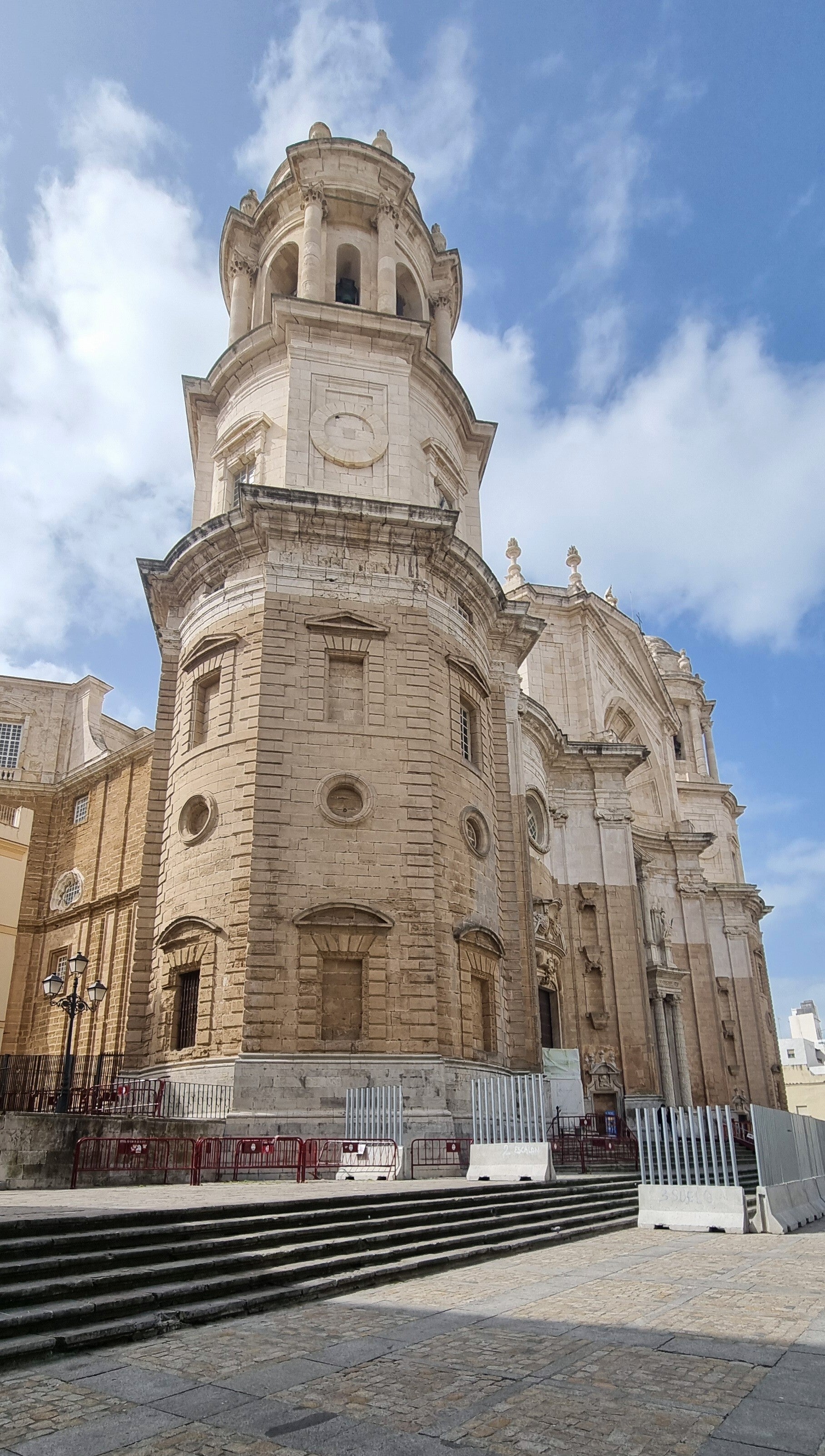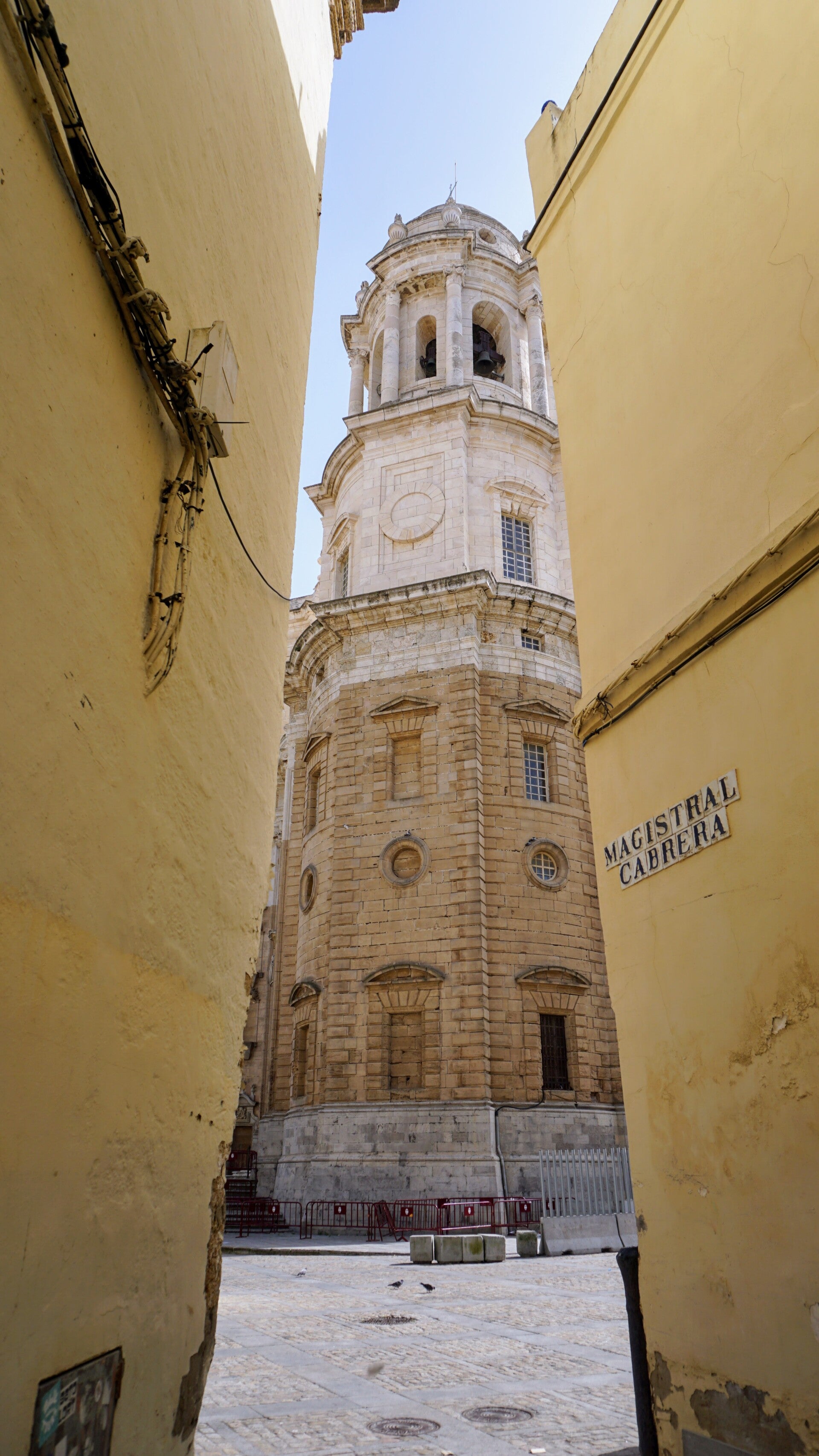 Um ein erstes Gefühl für Cádiz zu bekommen, spazieren wir gleich einmal durch die engen Gassen des Barrio del Pópulo, dem ältesten Viertel, und keine 300 Meter weiter stehen wir schon vor der Kathedrale, hier auch bekannt als "Kathedrale des Ewigen Baus". 116 Jahre Bauzeit! - sozusagen das "Berliner-Flughafen-Projekt des 18. Jahrhunderts". Dennoch ist sie die Top Sehenswürdigkeit, da muss jeder hin. Das markanteste Merkmal ist die goldene Kuppel, die sich gegen die weißen Fassaden gut abhebt, am schönsten glänzt sie in den Abendstunden. Aber davon soll man sich nicht täuschen lassen! Sie glänzt zwar wie Gold, in Wahrheit handelt es sich jedoch um günstige gelbe Kacheln, die damals den Reichtum der Stadt nur vortäuschen sollten, als die Handelsmonopole mit Amerika bereits schwanden. Auch an der Fassade kann man es sehen. Unten dunkler Kalkstein, oben heller Marmor. Der Grund? Das Geld aus dem Amerika-Handel war plötzlich weg, und man musste nehmen, was gerade da war. 🤷