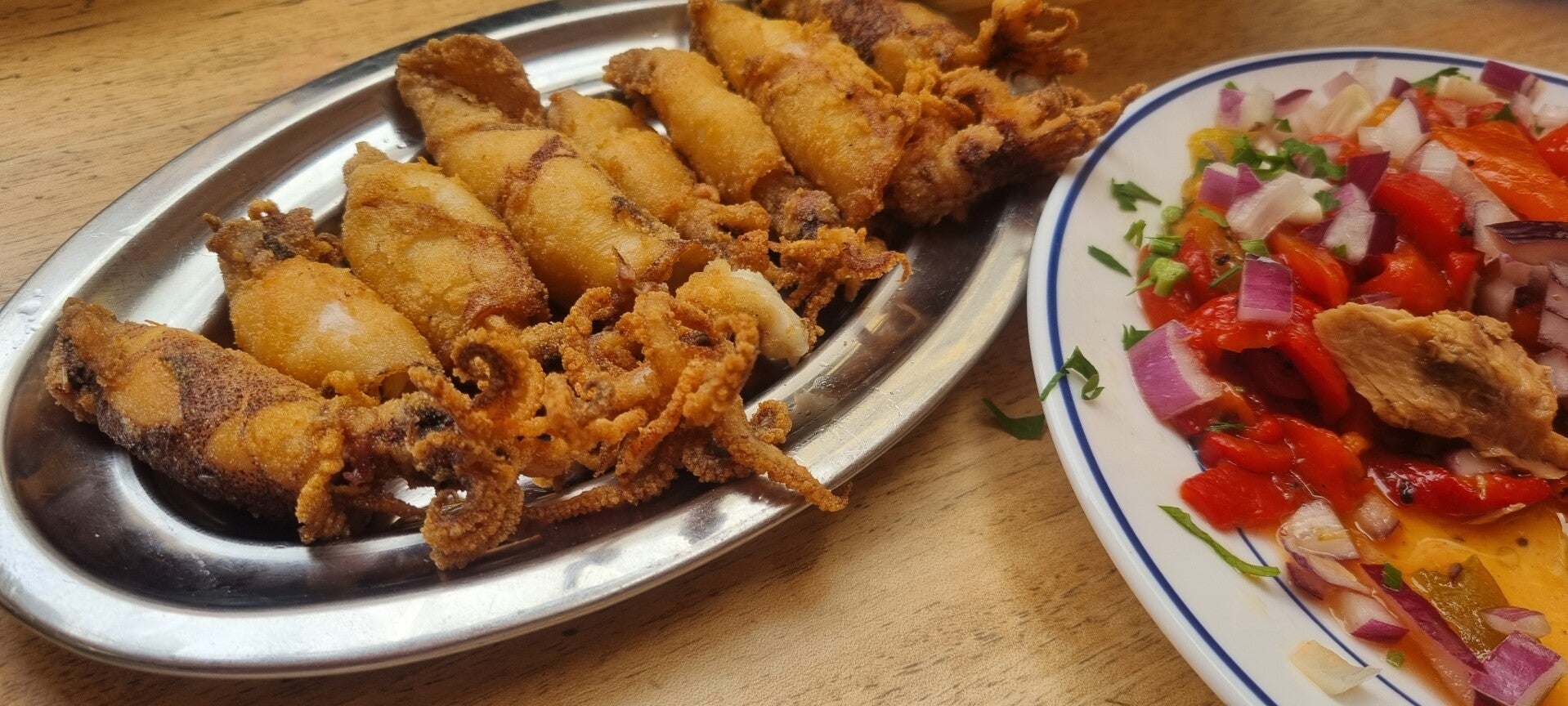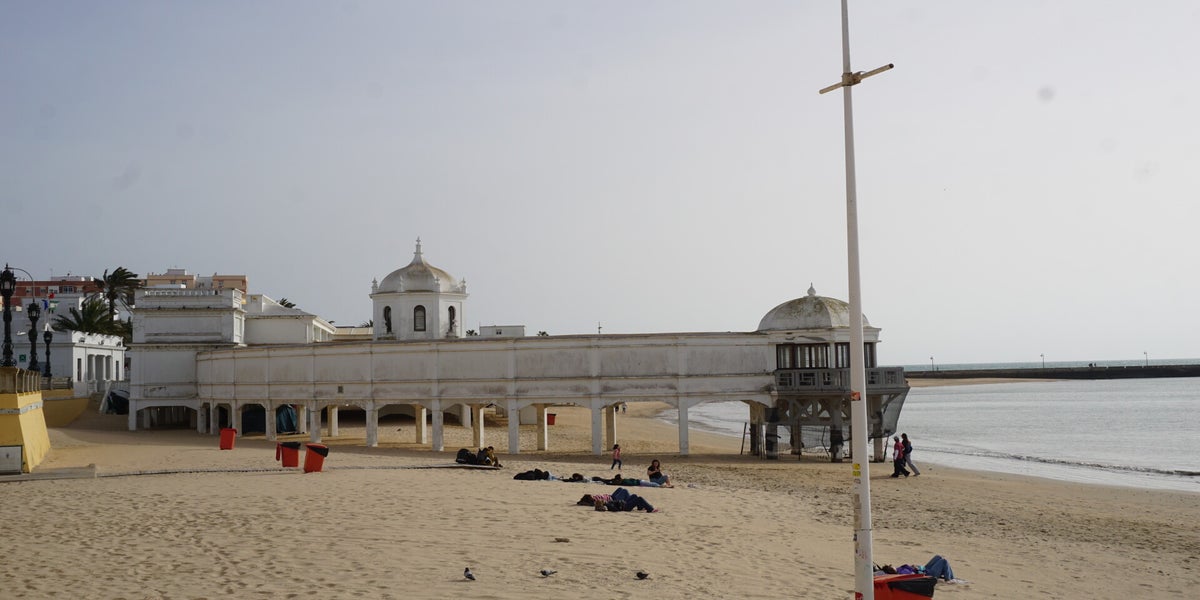 Die erste verdiente Pause machen wir dann am Playa la Caleta, dem einzigen Strand im Stadtzentrum. Er ist zwar nicht besonders groß, aber dafür mit feinem goldenen Sand und seichtem Wasser, ideal zum Relaxen und zum Baden. Wir entscheiden uns fürs Relaxen, das Bad in den Wellen wäre doch etwas frisch. Wenngleich wir schon zwei mutige Mädchen dabei beobachten, wie sie zumindest bis zur Hälfte im Wasser verschwinden. Wir bestellen uns lieber die kulinarische Spezialität der Region, die Pesaíto frito (frittierten Fisch) mit Sangria und genießen dabei den tollen Blick auf die Festungen Castillo de San Sebastián und Castillo de Santa Catalina (die älteste Festung von Cádiz) und das helle Balneario de la Palma auf dem Strand. (ein historisches, ehemaliges Heilbad aus den 1920er Jahren, heute beherbergt das unter Denkmalschutz stehende Gebäude das Zentrum für die Unterwasserarchäologie Andalusiens.