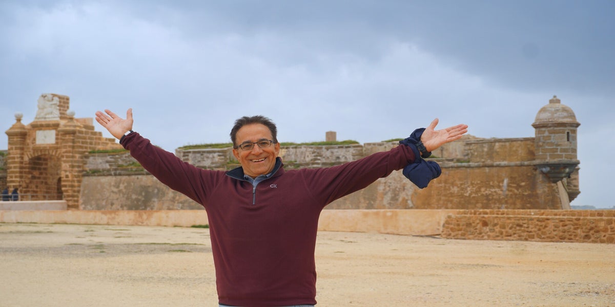 Die Festung San Sebastián aus dem 18. Jahrhundert ist im wahrsten Sinne des Wortes die letzte Bastion von Cádiz, denn sie liegt inmitten des Meeres, nur durch eine Promenade mit der Altstadt verbunden und für uns die letzte Station. Mit jedem Schritt, den wir uns der Festung nähern, wird es windiger. Wind Wind Wind. Der Paseo Fernando Quiñones ist nicht einfach nur ein Weg, sondern im Grunde die weltweit längste Windkanal-Simulation für Touristen. Und wir kämpfen uns durch! Mit jedem Meter Richtung Festung verwandelt sich meine Frisur in ein Kunstwerk, das man sonst nur von Vogelscheuchen nach einem Hurrikan kennt! Hier zeigt sich jetzt auch der wahre Vorteil, wenn man die 173 Stufen des Torre Tavira ausgelassen hat: so haben wir volle Energie in den Beinen, um uns wie einen Anker in den Boden zu stemmen. Wir bezwingen den Atlantik-Wind und erreichen die Festung! Es ist ja kaum zu glauben, dass die Ursprünge dieses Platzes darauf zurückzuführen sind, dass einst venezianische Seefahrer, die mit der Pest infiziert waren, hier "ausgesetzt" wurden und diese aus den Ruinen eines Leuchtturmes das erbauten, was später einmal die Verteidigungsanlage von Cádiz werden sollte. Da stehen wir also, wie zwei Felsen in der Brandung und blicken zurück über das Meer und die gesamte Altstadt von Cádiz, es ist einfach fantastisch!
