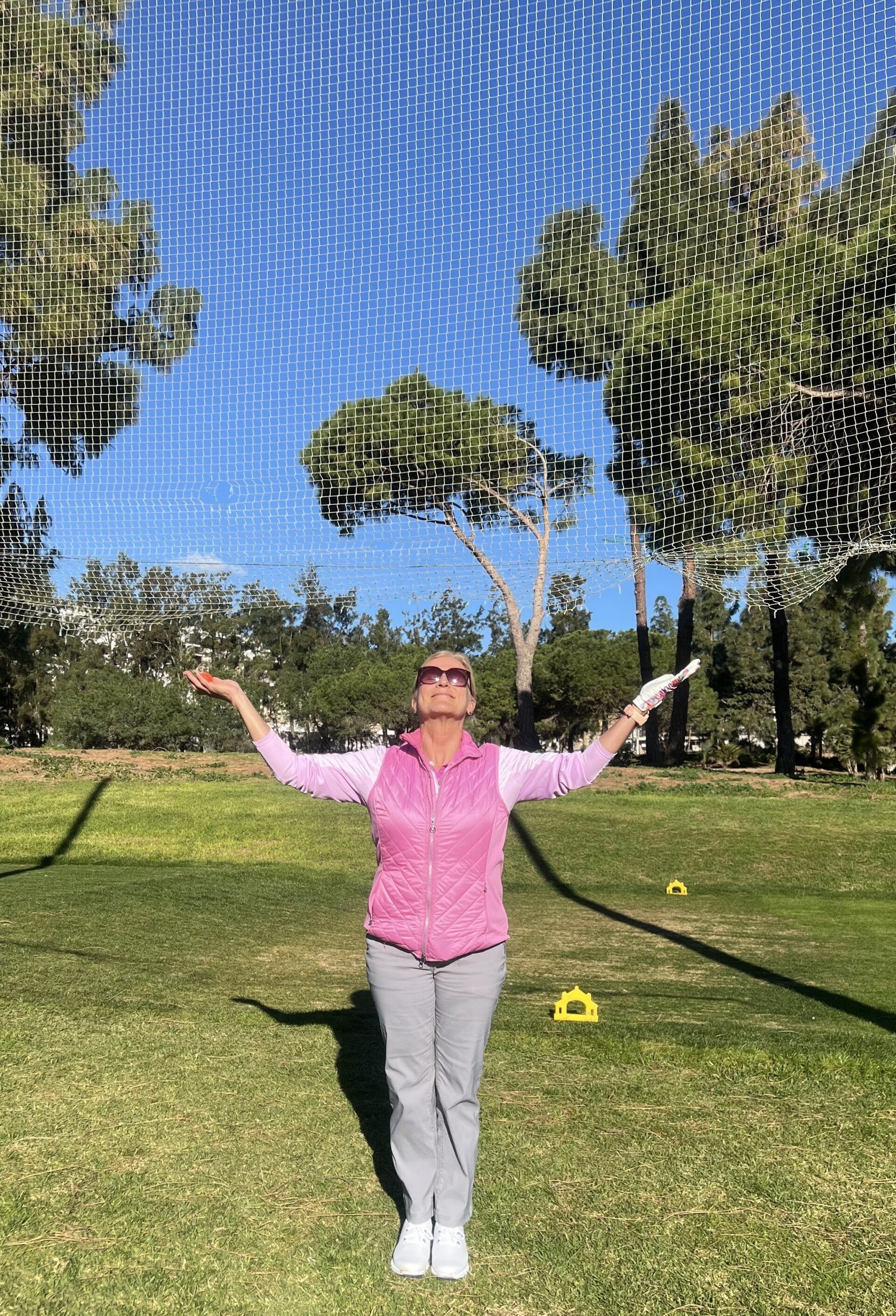 Kurze Zusammenfassung: Wir wurden mit einem älteren Paar (wesentlich älter als wir!!) in einen Flight gepackt, nennen wir sie einfach die "Flieg-nicht-weit"-Holländer. Die beiden waren zwar nett, aber ihre Bälle hatten keine lange Flugzeit, bei ihr war es weniger ein Drive als eher ein vorsichtiges "zu Boden legen". Bei ihm hieß es nach jedem Abschlag "Ab in die Botanik!" Dann verbrachte er mehr Zeit in den Büschen als auf dem Fairway. Hätten wir für jeden verschlagenen Ball je einen Euro bekommen, wäre das Greenfee am Ende wahrscheinlich wieder drin gewesen. Zusätzlich wurde der Marshall an diesem Tag zum ungebetenen Schatten unserer Gruppe. Dreimal tauchte er auf, um das Tempo anzumahnen. Aber was sollten WIR denn machen?? Auf einem Par 4 sind 7 Schläge bis zum Grün eben kein Golf, sondern mehr eine ausgedehnte Wanderung mit Eisengehstöcken. Die Krönung war jedoch der Marshall, der einen furchtbaren taktischen Fehler machte: er ernannte ausgerechnet Maik zum "Aufseher" - ER solle dafür sorgen, dass das niederländische Duo einen Zahn zulegt! 🤦♀️Maiks Laune bewegte sich zusehends gegen Null. In diesem Zustand ist Schweigen neben ihm nicht nur Gold, sondern eine überlebenswichtige Sicherheitsmaßnahme! Aber auch ich bekam einmal fast Schnappatmung, als ich bei Loch 15 gefühlt den Abschlag meines Lebens hatte, und der Marschall uns genau danach aufforderte, die Bälle aufzuheben und zum nächsten Loch zu gehen. Es ist, als würde man ein super 5-Gänge-Menü bestellen, den ersten perfekten Bissen nehmen und dann kommt der Kellner und nimmt deinen Teller wieder mit!!