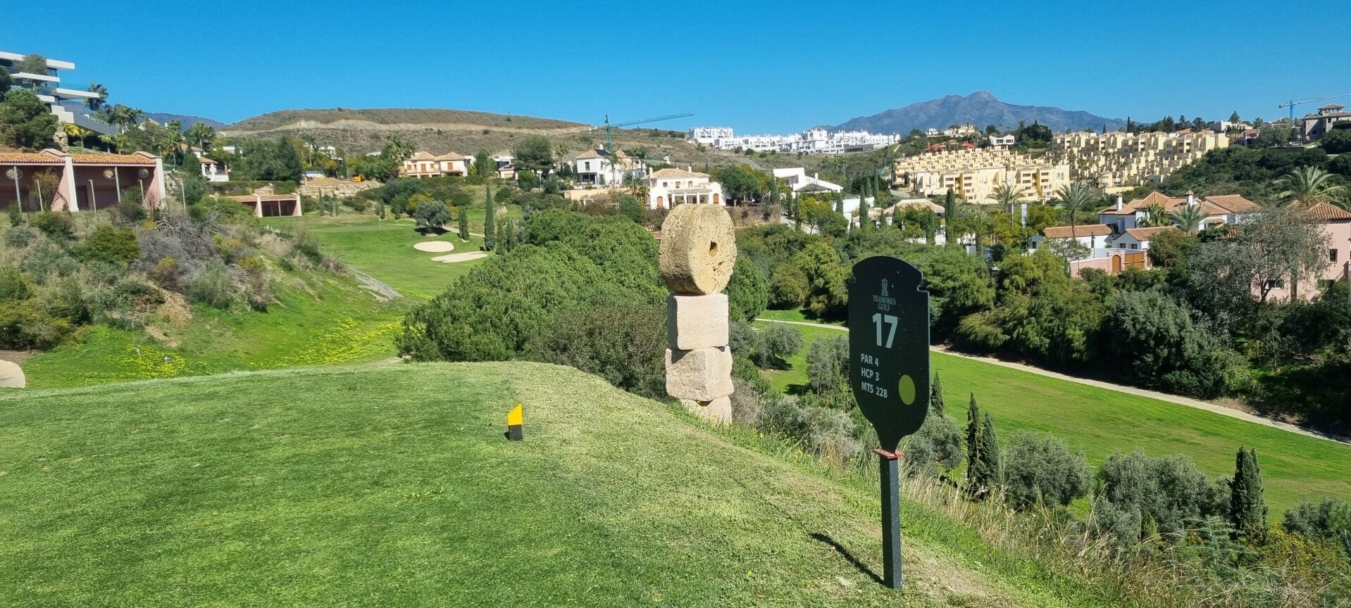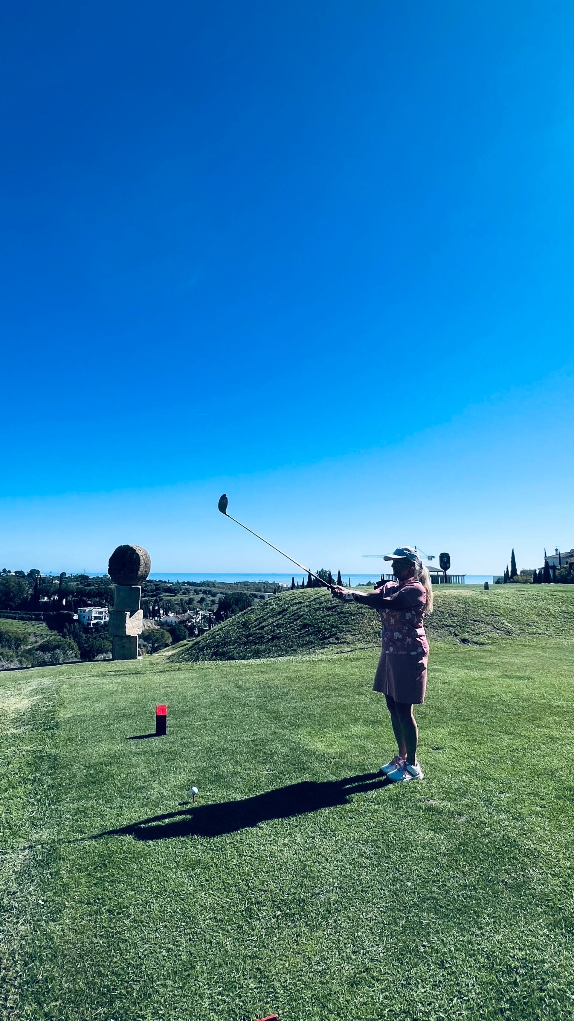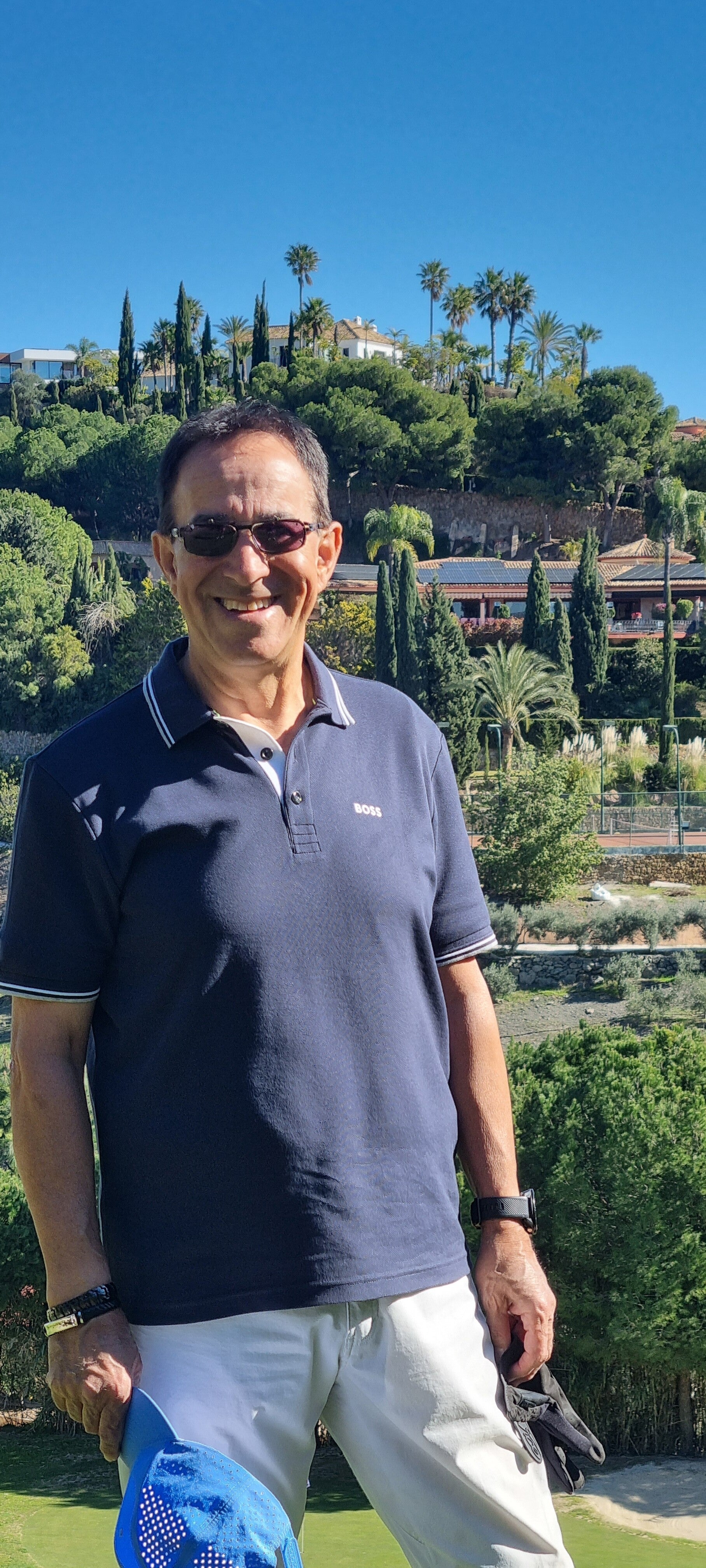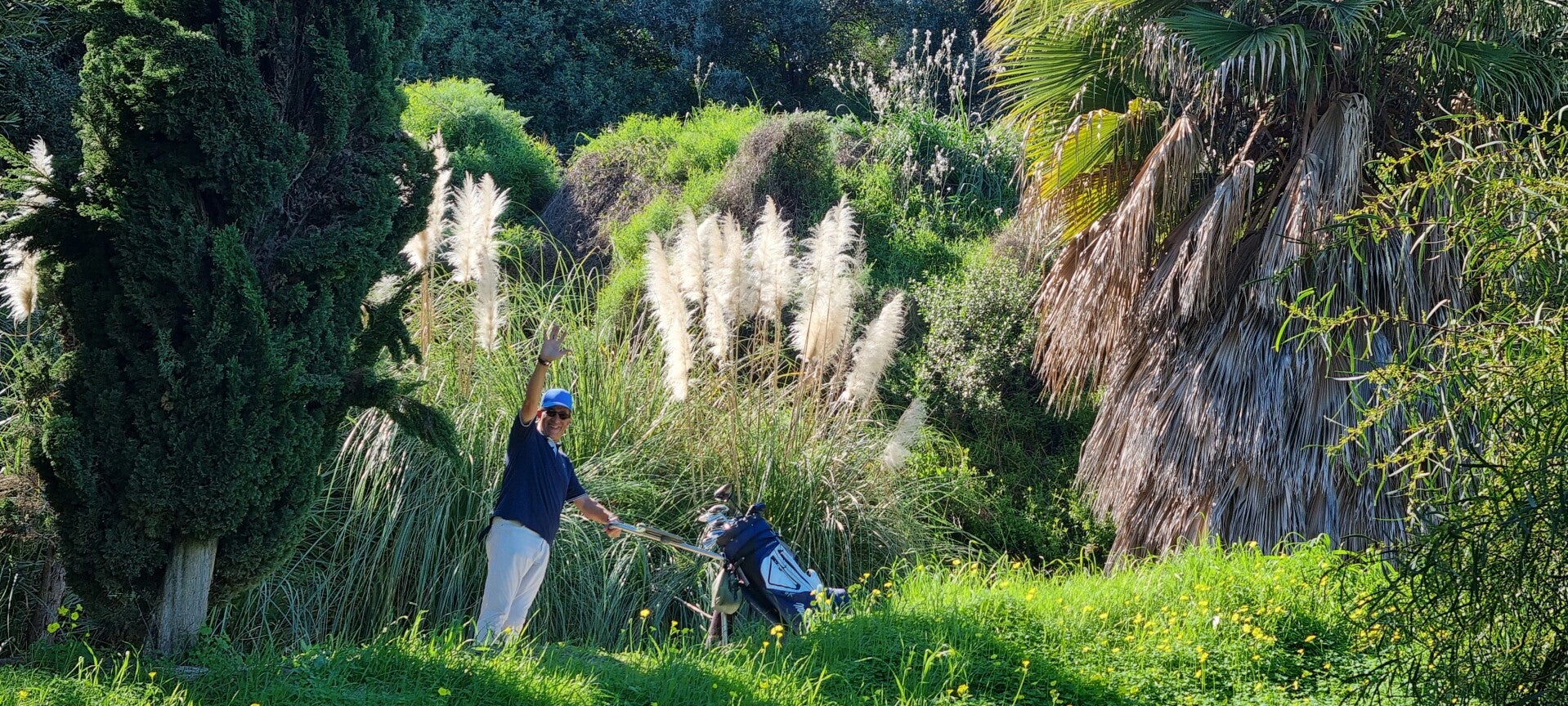 Wir testen wieder einmal einen neuen Golfplatz. Der Tramores Golf Course ist einer von drei Plätzen des Anantara Villa Padierna Golf Resorts in der Nähe von Marbella. (Nicht nur, dass er leicht abseits der beiden anderen Plätze Flamingos und Alferini liegt, kam er mir an manchen Stellen auch stiefmütterlich behandelte vor) Es ist ein Par-63-Platz und somit kürzer als ein Standard-Kurs. Inklusive Fotosessions, Blödeln und Schmusen schafft man ihn zu Fuß leicht in 3 1/2 Stunden (außer jene, die ewig nach ihren Bällen suchen müssen). Bei den Beschreibungen findet man immer wieder "ideal zur Perfektionierung ihres kurzen Spiels, aber technisch sehr anspruchsvoll!" Oh ja! Er verlangt Präzision und Genauigkeit.