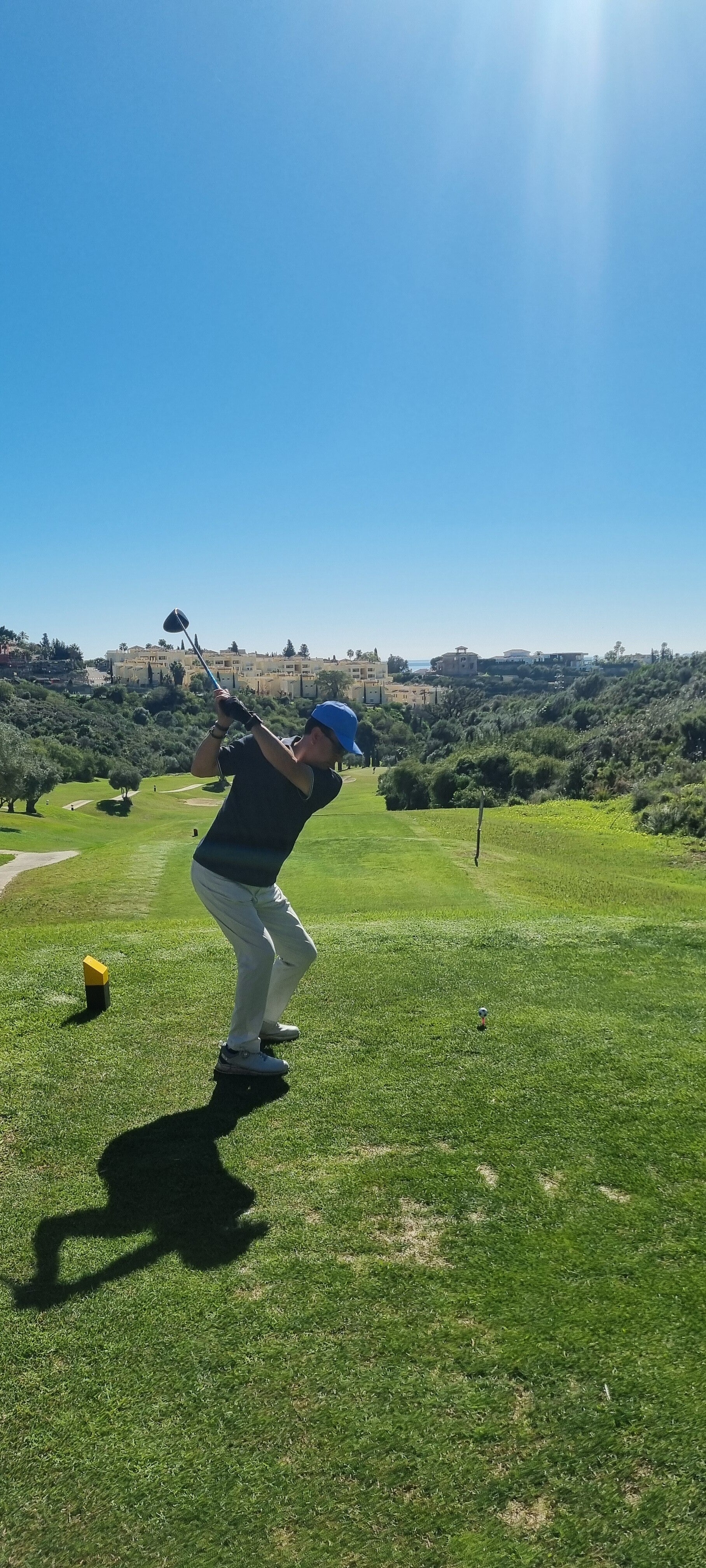 Bei der Rückfahrt springt es mir wieder ins Auge, wo immer du hinschaust, überall findest du einen Golfplatz! Ja, das ist die Costa del Golf in ihrer reinsten Form: Egal ob du rechts, links oder in den Rückspiegel schaust - überall wehen Fahnen im Wind. Man könnte fast meinen, die Spanier hätten das Wort "Landschaft" einfach durch Fairway ersetzt.